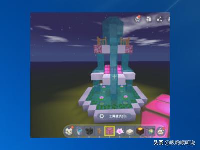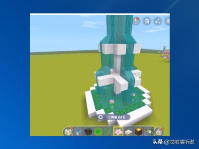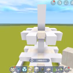 4、再往上数4格,做一个比第一台喷泉小一号的井字,围住中间的高柱,同样的在井字的中间放一个倒置的楼梯。